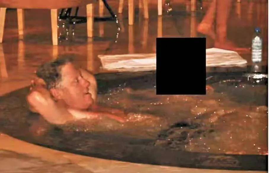 在克林顿出庭作证前,媒体曝光了一些镜头,其中一张就是他躺在浴缸的照片,身旁还有一名年轻女子,克林顿表明不认识。