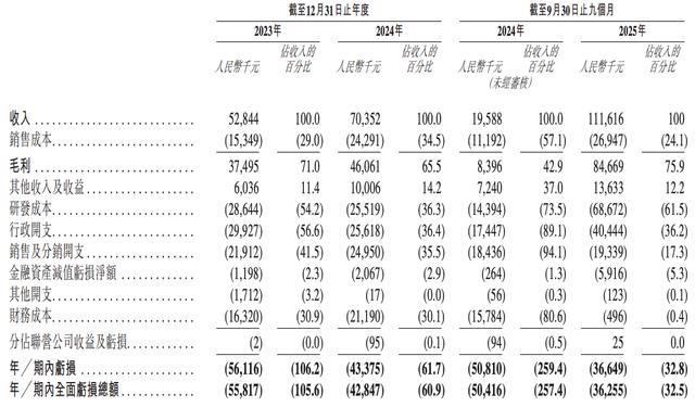 2023年、2024年和2025年前九个月(前三季度),德适生物的营收分别约为5284.4万元、7035.2万元和1.12亿元,净亏损分别约为5611.6万元、4337.5万元和3664.9万元。