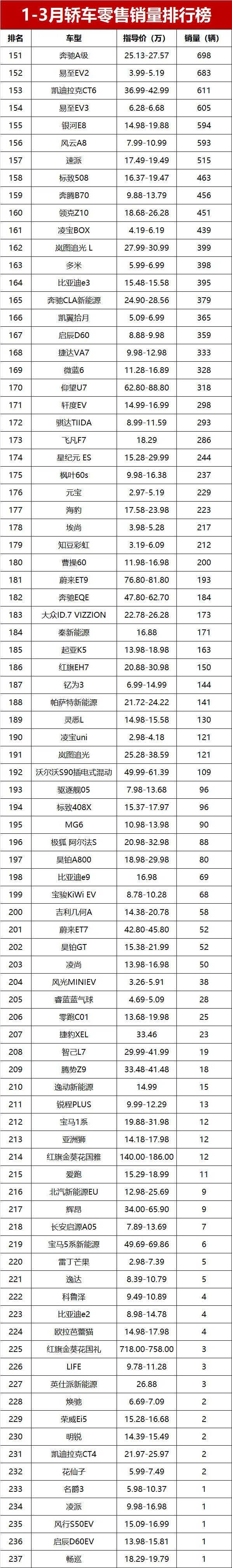 还有些车型的表现,真的让人跌破眼镜!曾经的“流量王”小米SU7,由于换代的原因一季度才卖了9233辆,排第51位,下滑得也太明显了;特斯拉Model 3虽然排第16位,卖了30840辆,但跟它以前的表现比,真的差远了,显得有些拉胯。曾经的“国民家轿”卡罗拉,一季度才卖19263辆,排第29位,早就没了当年的风光;本田思域更惨,才卖7171辆,排第69位,这下滑幅度,谁看了不咋舌,这也能看出合资紧凑型轿车的竞争力正在下滑。