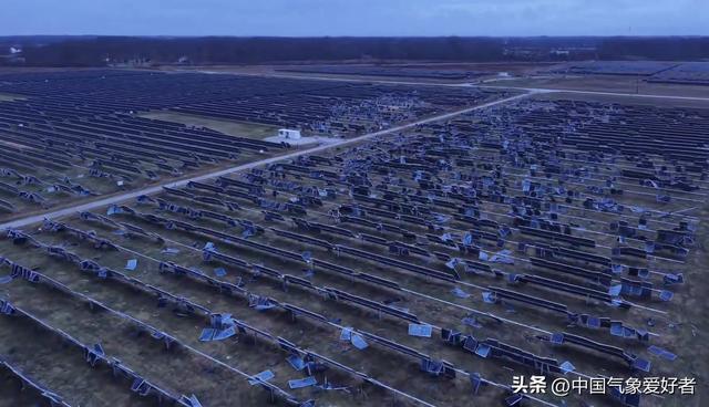 一波未平一波又起,中部大平原的冷暖冲突在3月中旬依然维持在异常激烈的状态。雷雨大风、巨型冰雹以及龙卷风在多州屡见不鲜,构成了一套全能型的灾害链。3月11日夜间,一场伴随着强雷电的龙卷风精准袭向了印第安纳州的一处大型光伏发电厂。太阳能板在每小时超过两百公里的狂风中如纸片般飞散,这座投资巨大的绿色能源心脏被彻底摧毁,周边紧邻的住宅区和大型超市也惨遭蹂躏,满目疮痍。
